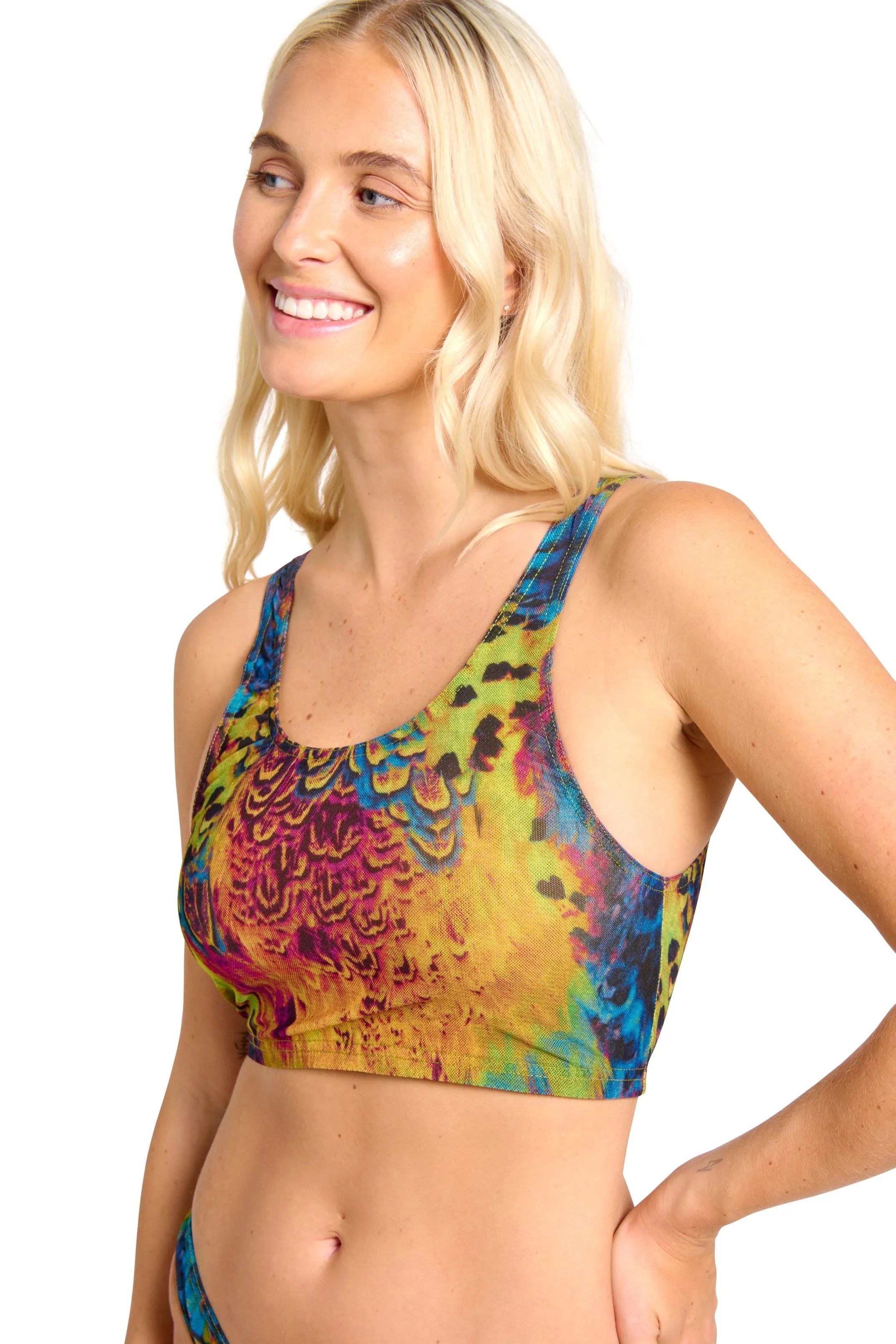 NB! Mistahes läbipäevituv kangas ei lase läbi 100% UV-kiirgusest. Kombineeri läbipäevituv sporditopp meie päikesekaitseõlidega, et saavutada ühtlasem päevitus. Läbipäevituvate riiete mõju sõltub nahatüübist. Sobiva päikesekaitseõli ja läbipäevituvate riiete kombinatsioon on individuaalne.