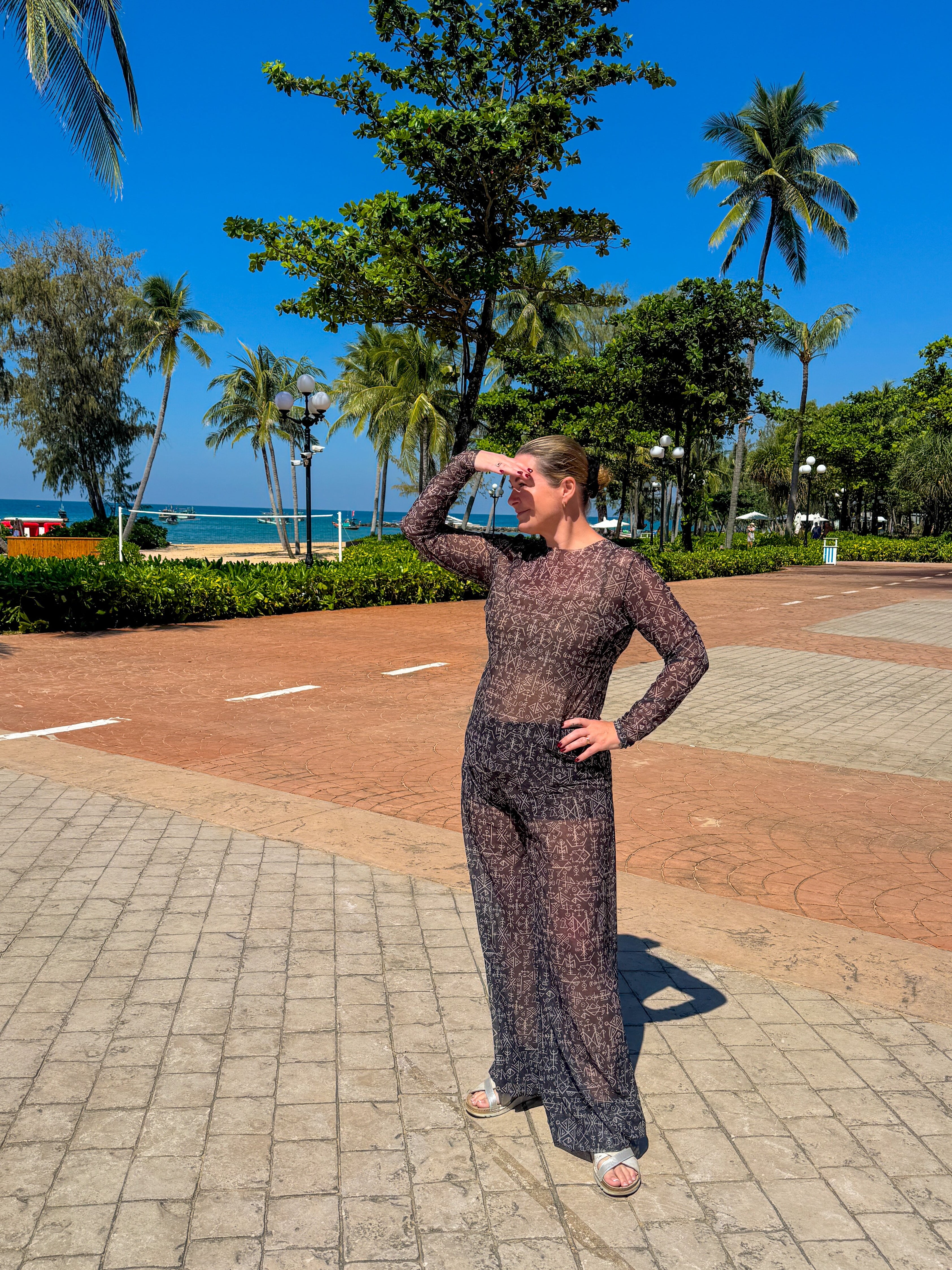 Õhukesest ja augulisest kangast käivad õhk ja päikesekiired mõnusasti läbi. Muster petab vaataja silma ära ja ei saagi aru, et kangas NII õhuke on. Põletusohtu aga ei ole, sest kangas kaitseb nahka piisavalt. Väga tundliku nahaga inimesed peavad siiski olema ettevaatlikud ja katsetama järk-järgult. Samas ei ole sugugi karta, et sellise „kangast kreemi“ maha higistad, ujud või unustad😊
